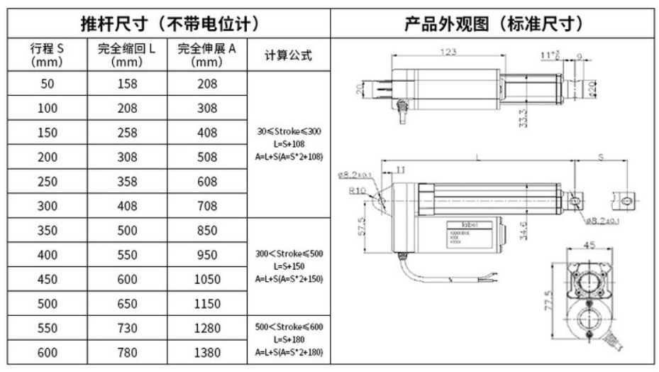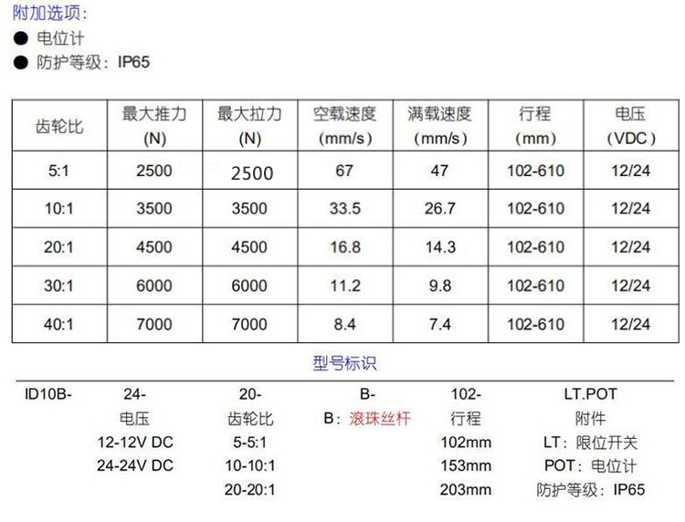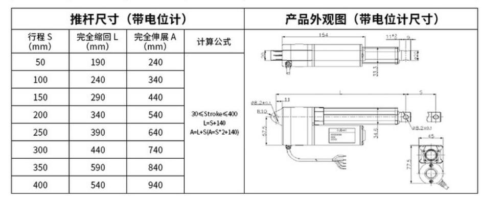 內(nèi)置限位開關(guān)(可達(dá)300W次),可實(shí)現(xiàn)行程可隨意停止,并具備自鎖能力